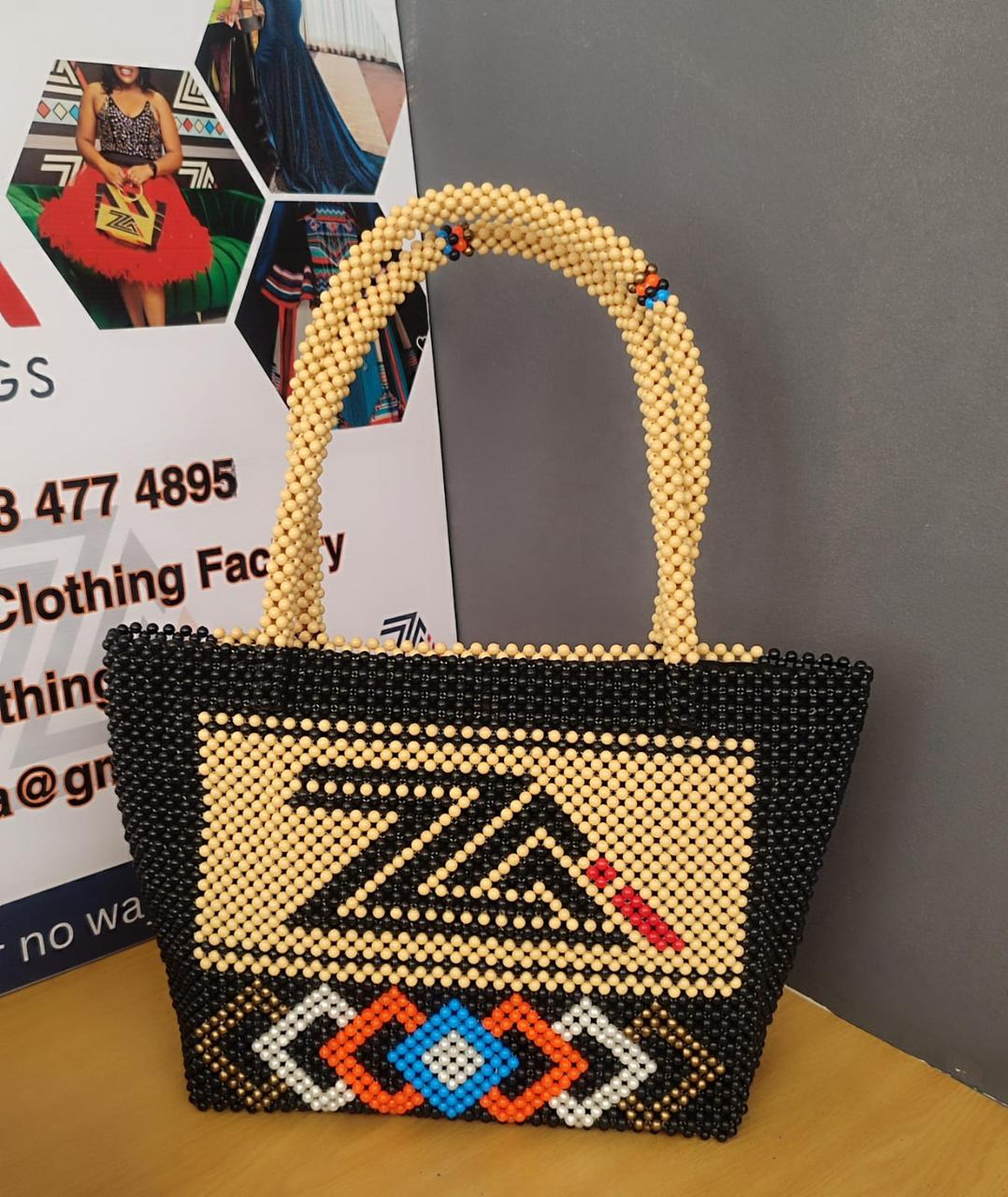 Showcase your love for Zazi Clothing with our Uphawu Lwekhaya Beaded Handbag, a true emblem of our brand’s artistry and heritage. This stunning handbag is meticulously handcrafted with thousands of beads, featuring the iconic ‘ZA’ Zazi logo prominently displayed on a contrasting cream or beige panel against a sophisticated black beaded backdrop. The design is further enriched by a band of vibrant Xhosa-inspired geometric patterns in striking orange, blue, and white below the logo. With its comfortable cream or beige beaded handle, this bag is not just an accessory, but a stylish declaration of your connection to Zazi’s unique blend of tradition and modern chic.