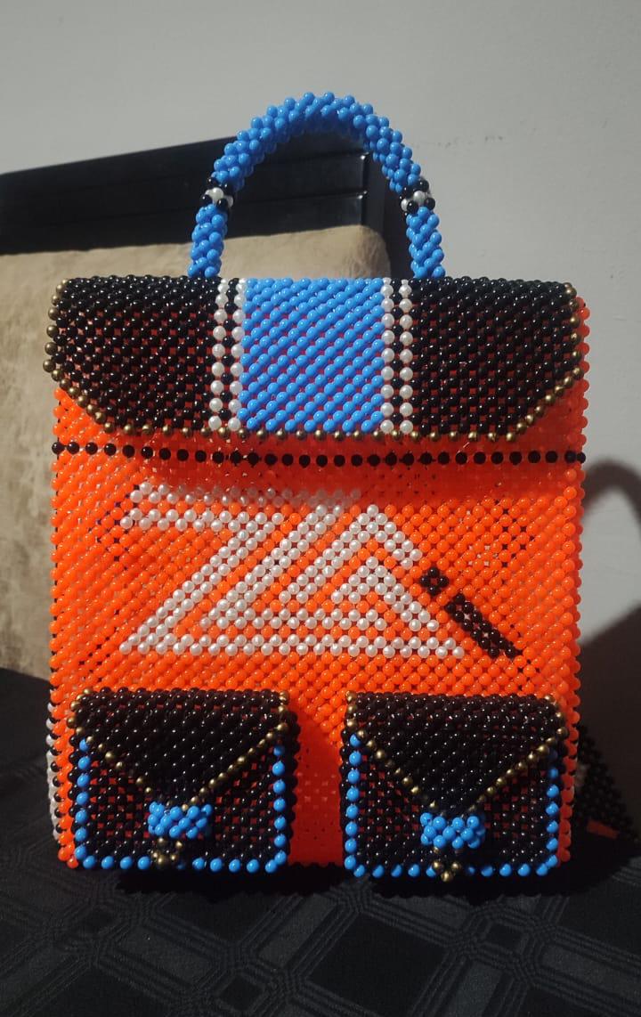 Indulge in the ultimate expression of African luxury with our Zazi Beaded Statement Bag. This exquisite Zazi Clothing handbag is a masterpiece of intricate beadwork and sophisticated design, rivaling high-fashion accessories. Its structured silhouette features a vibrant orange beaded body, proudly showcasing the iconic ‘ZA’ Zazi logo in crisp white and bold black. The elegant flap, adorned with a striking pattern of deep black, brilliant blue, and lustrous gold/bronze beads, conceals a beautifully crafted interior, while two charming front pockets add a touch of practical chic. Finished with a comfortable, stylish beaded handle in coordinating blue and black, this bag is an heirloom-quality piece designed to turn heads at the most exclusive occasions. Experience the pinnacle of Zazi’s Xhosa-inspired artistry.